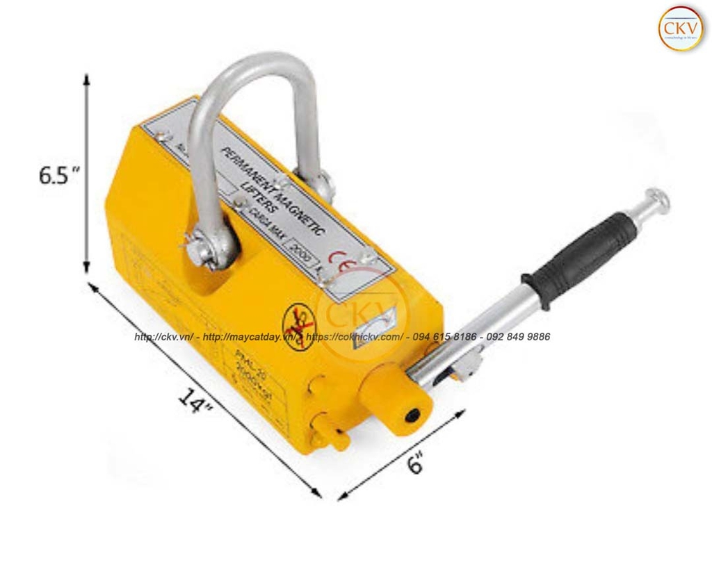 Cẩu từ nâng hạ loại 2 tấn là thiết bị nâng hạ sử dụng nam châm vĩnh cửu lực từ lớn, được thiết kế để nâng các vật liệu kim loại có mặt phẳng như thép tấm, thép khối… với tải trọng tối đa 2.000 kg. Thiết bị hoạt động thông qua tay gạt cơ học, giúp người dùng bật hoặc tắt lực hút nam châm một cách chính xác mà không cần nguồn điện hay hệ thống phức tạp.
