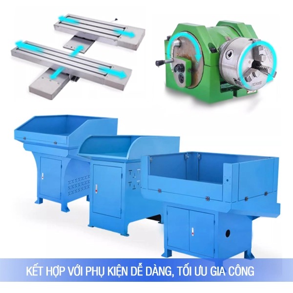 8/ Kết hợp cùng nhiều loại phụ kiện như đầu khoan/taro nhiều mũi, bàn trượt... cho phép khoan/ nhiều lỗ hàng loạt tối ưu gia công