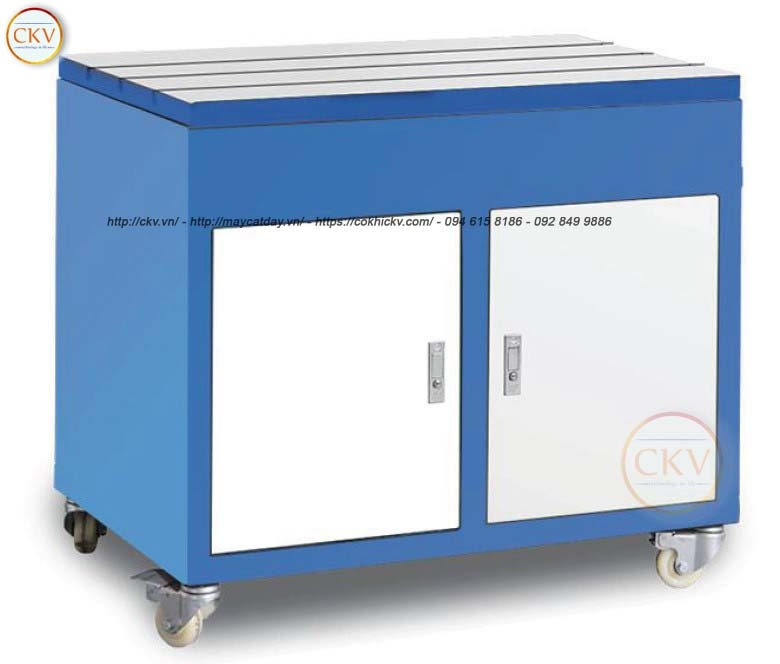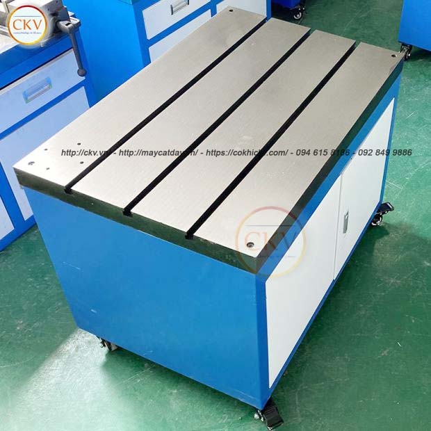 Rãnh chữ T: Có sẵn 2–3 rãnh chữ T tùy cấu hình — giúp cố định máy hoặc phôi chắc chắn. cokhickv.com